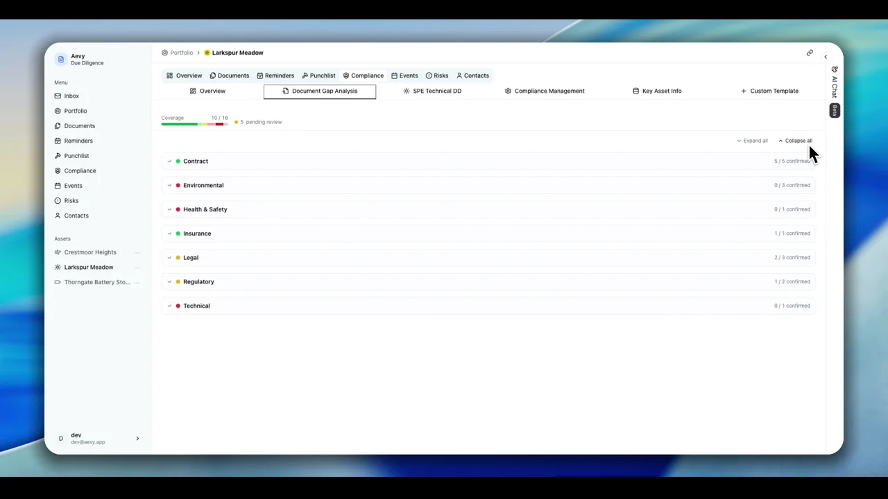 Evaluating renewable assets requires combing through contracts, compliance records, and reports — often scattered across systems in in different formats. Manual processes slow the evaluation, increase the risk of missed details, opportunities and make scaling due diligence cycles impractical.